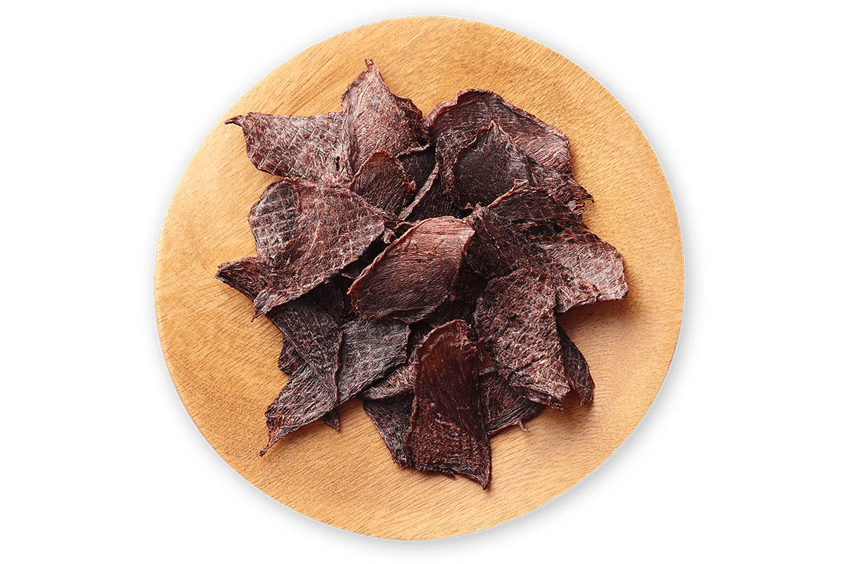 国産のシカ肉を一枚一枚丁寧にスライスし 、 じっくりと低温乾燥させることで、 シカ肉本来の旨味と栄養をぎゅっと閉じ込めました。 素材の姿を残したわんちゃんも抜群の食いつきのジャーキーです 。ご褒美のおやつやドッグフードのトッピングにどうぞ!