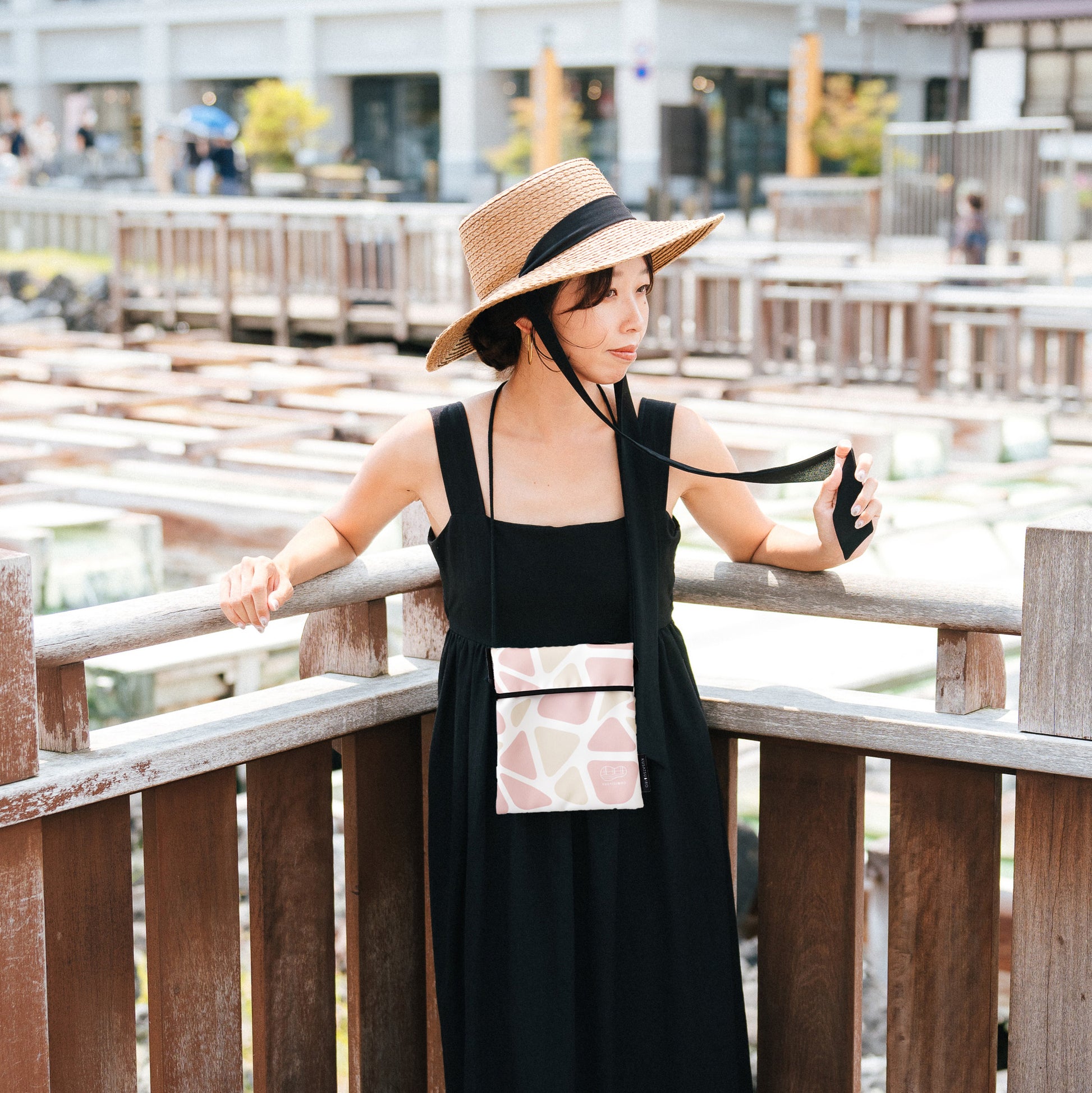 温泉街散策、まち歩きを手ぶらで楽しむためにデザインされたオリジナルサコッシュ。スマホやお財布、ちょっとした小物を持ち歩くのに最適です。