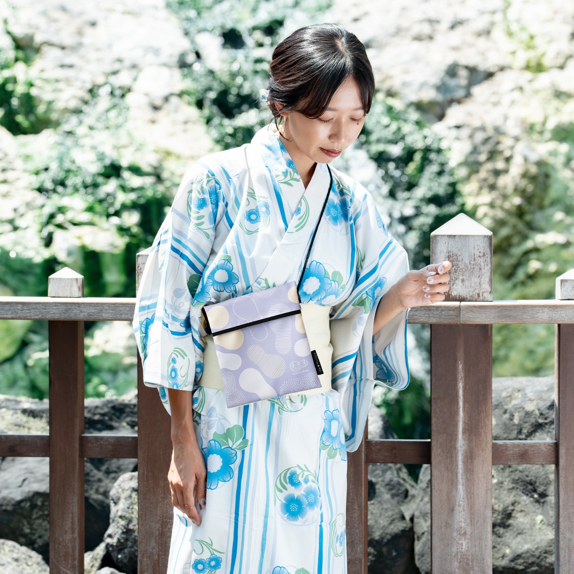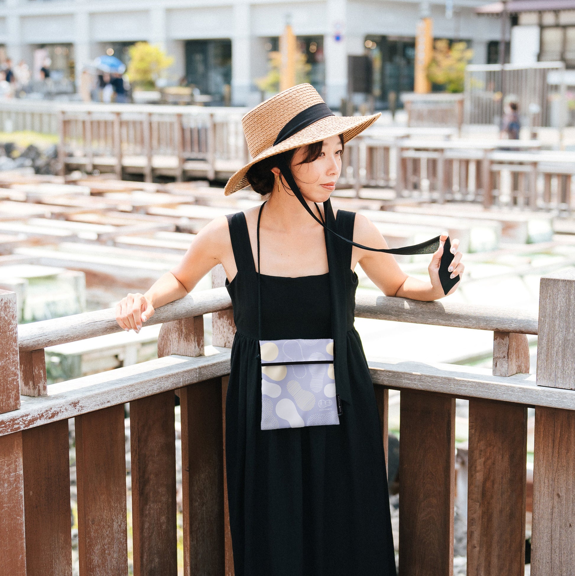 温泉街散策、まち歩きを手ぶらで楽しむためにデザインされたオリジナルサコッシュ。スマホやお財布、ちょっとした小物を持ち歩くのに最適です。