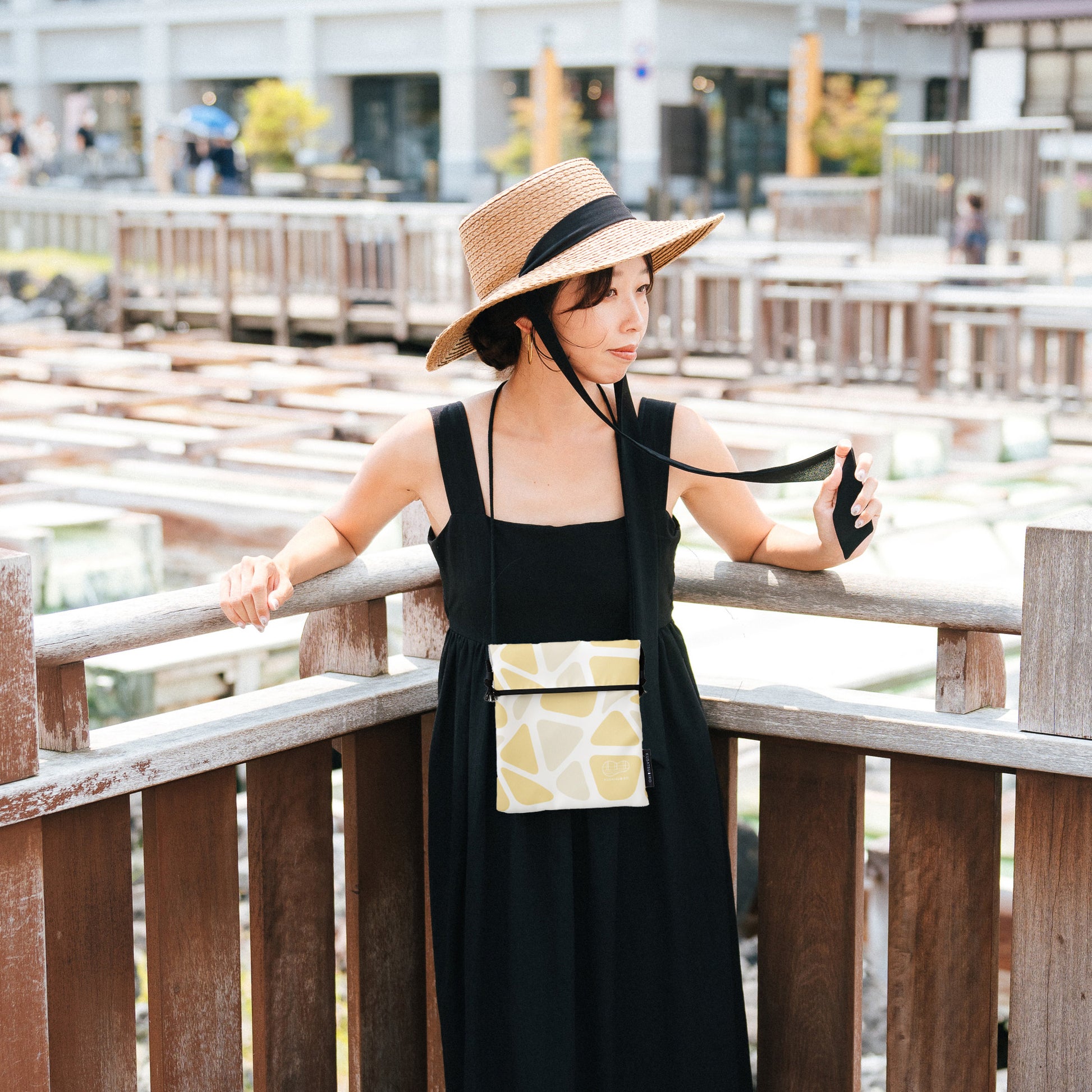温泉街散策、まち歩きを手ぶらで楽しむためにデザインされたオリジナルサコッシュ。スマホやお財布、ちょっとした小物を持ち歩くのに最適です。