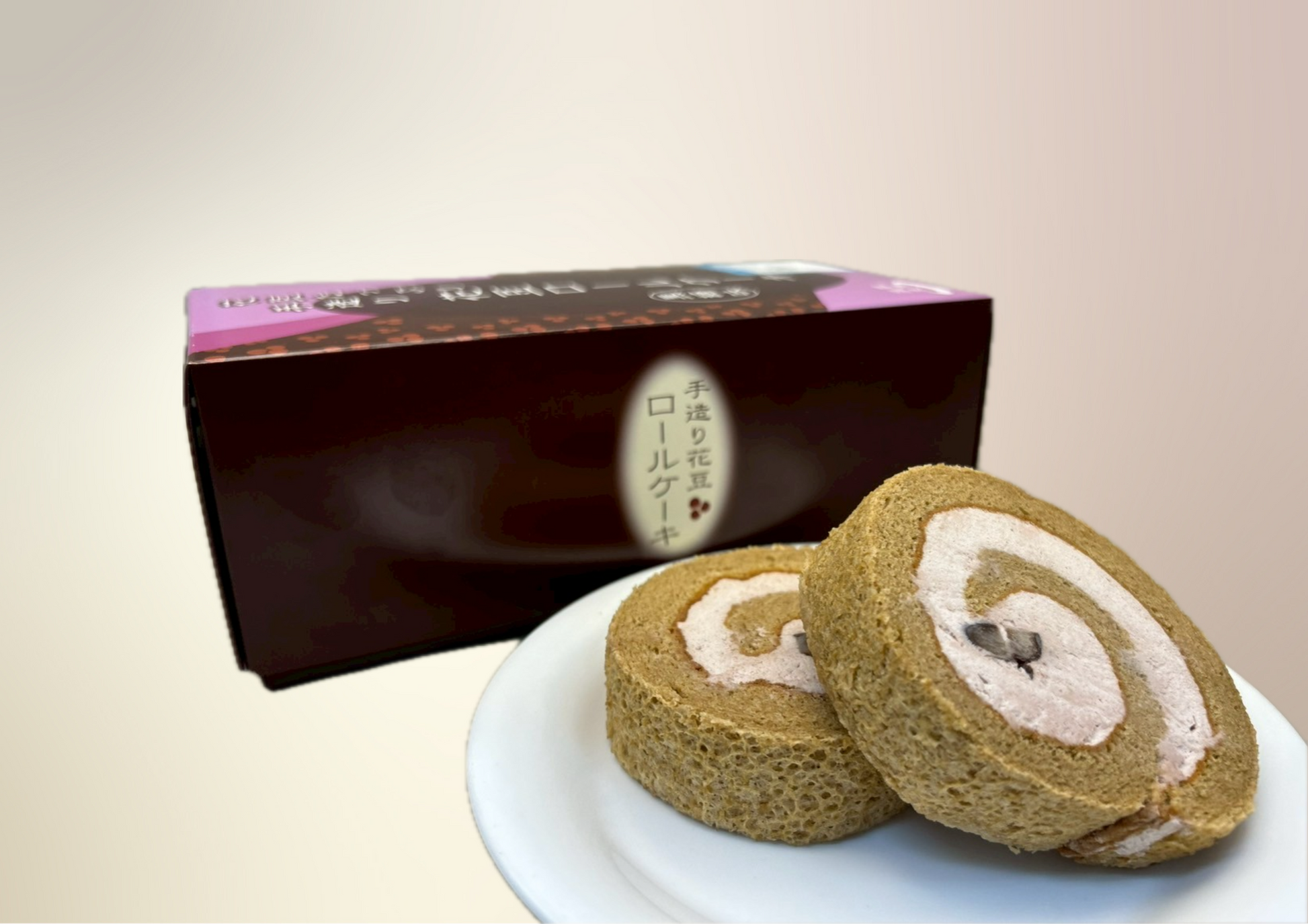 地元産の高原花豆を使った道の駅オリジナルの花豆ロールケーキ。